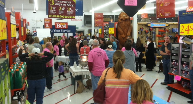 There are cars in every single parking spot at the hardware store. Cars are wedged on the grassy patches between the lot and the highway, overflowing into the Family Dollar parking lot next door, and stretching past the lumber area in makeshift spots along the sides of the road. As Mitzi maneuvers the party bus (AKA her minivan) onto the grass, my friends and I see a long line of shoppers waiting to enter the store. More cars pull in behind us, searching out free spaces in which to park. It is a balmy spring evening in Mount Pleasant. We have arrived at Ladies Night at the hardware store.
